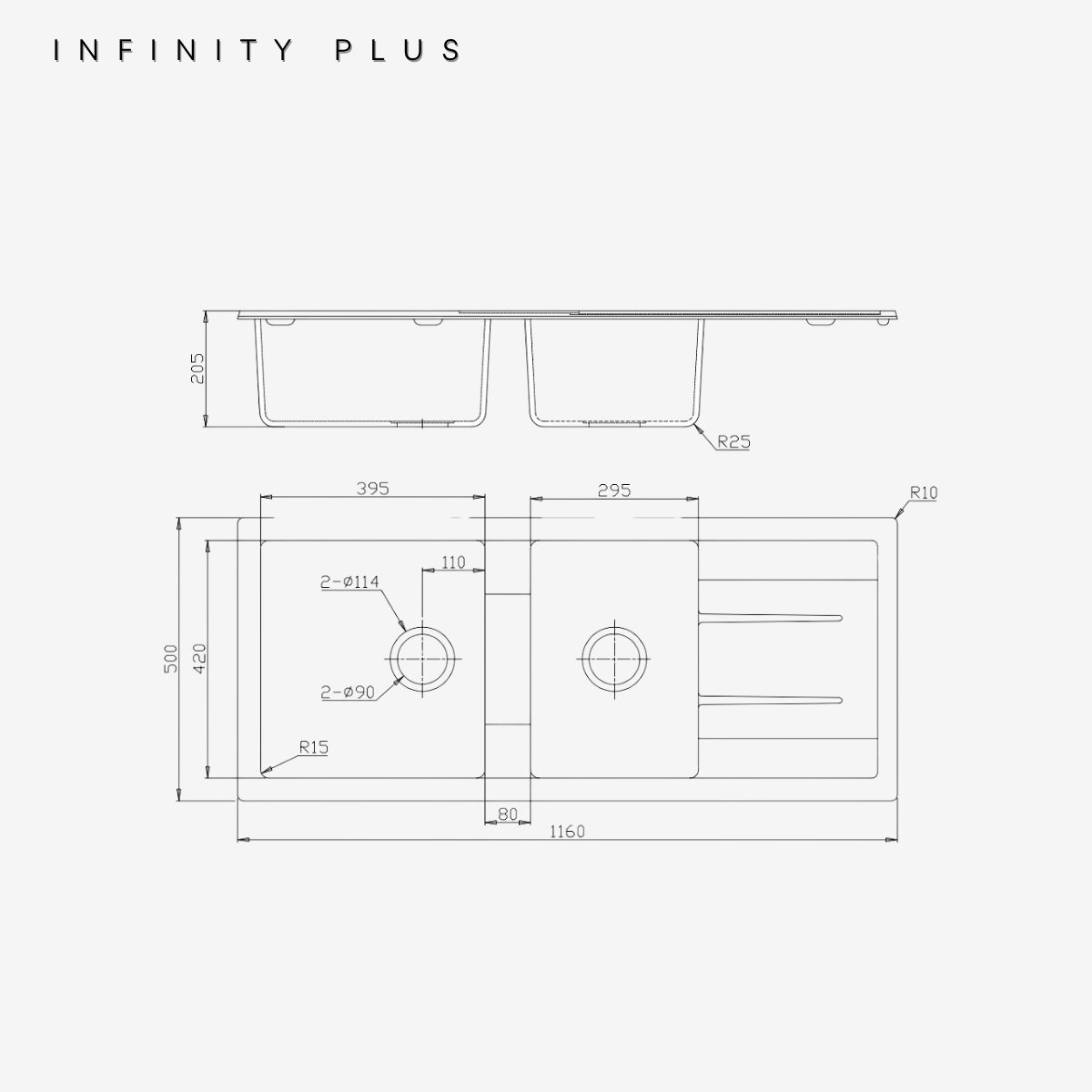 - Composite Granite Sink (80% Granite), making our sinks ultra-durable and scratch resistance.