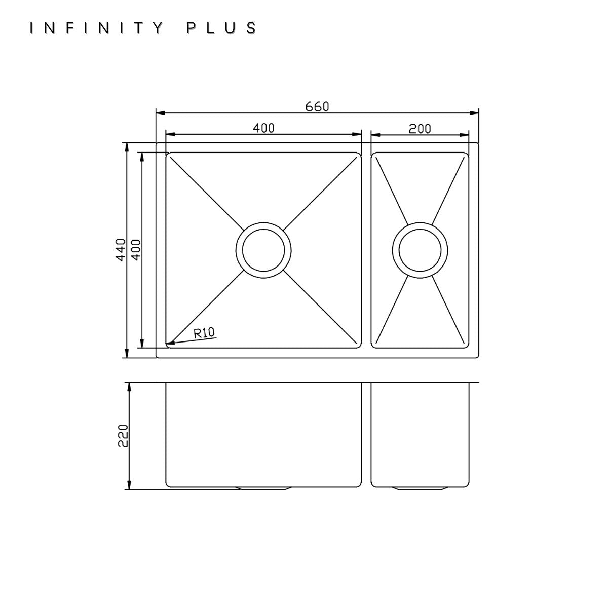 INFINITY PLUS Premium PVD Colour 660*440 1-1/2 Bowl Sink