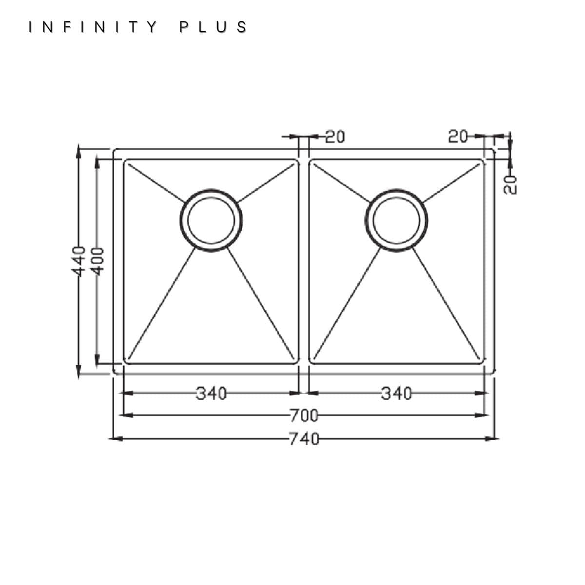 INFINITY PLUS Premium PVD Colour 740*440 Double Bowl Sink