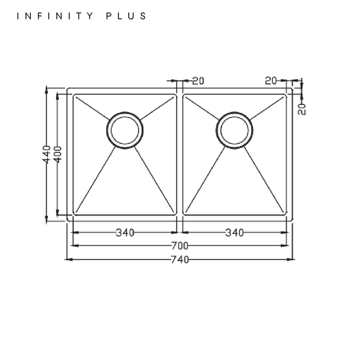 INFINITY PLUS Premium PVD Colour 740*440 Double Bowl Sink