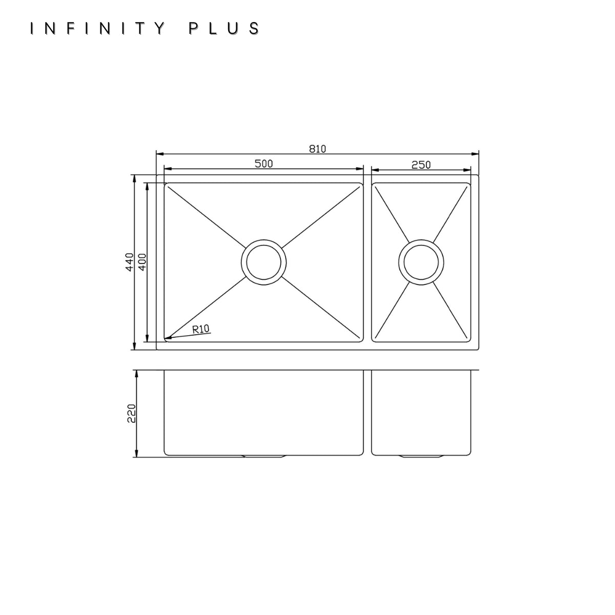 INFINITY PLUS Premium PVD Colour 810*440 1-1/2 Bowl Sink