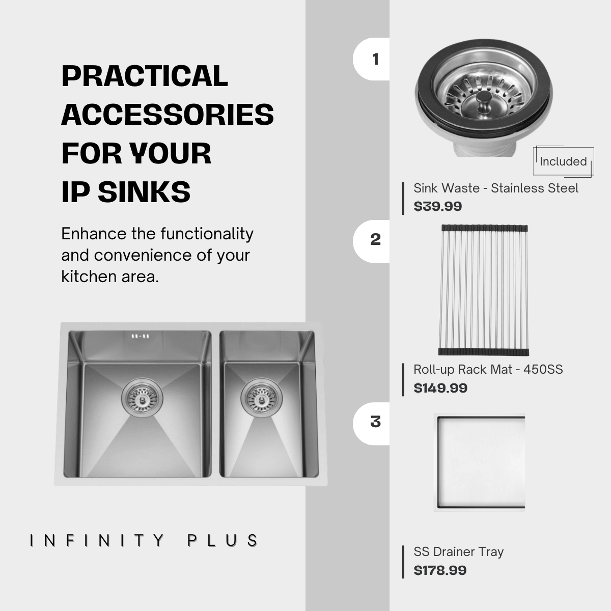 STD-18G/1.2mm Stainless Steel Sinks from Infinity Plus Sinks offer a great option for all homeowners and professionals seeking quality, style, and value in their kitchen sink selection.